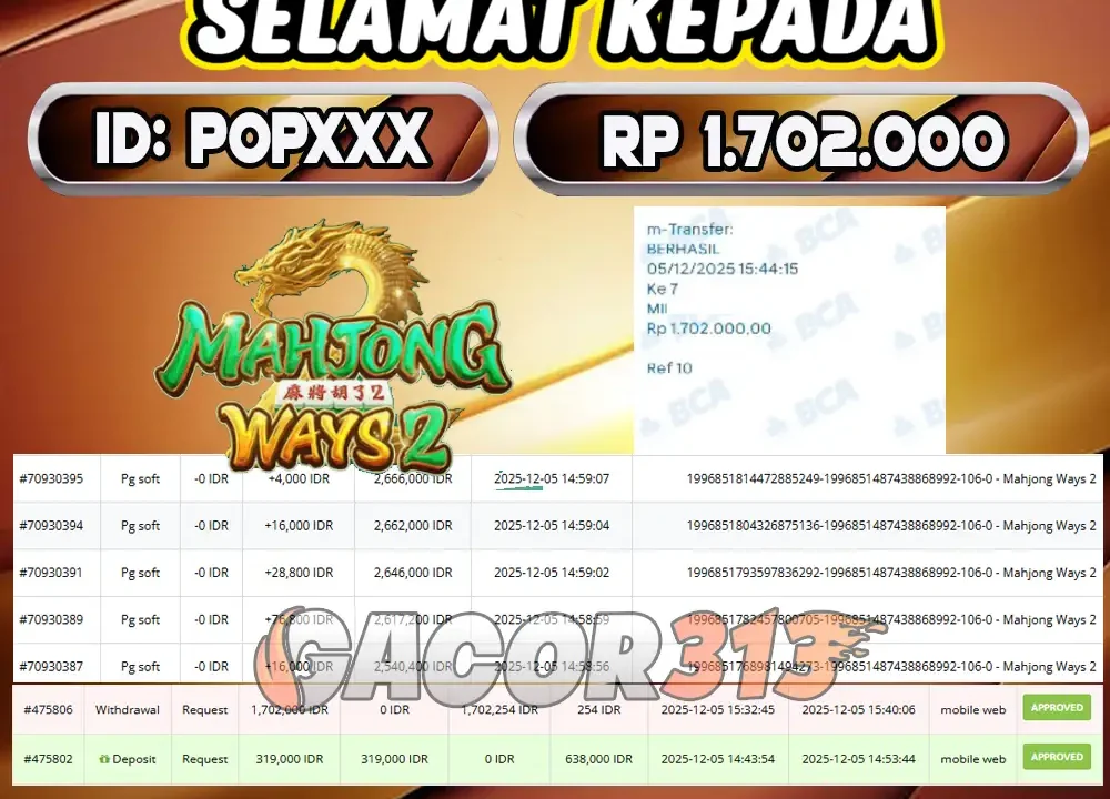 GACOR313 Bukti Pembayaran Lunas Jackpot Slot Games Mahjong Ways 2